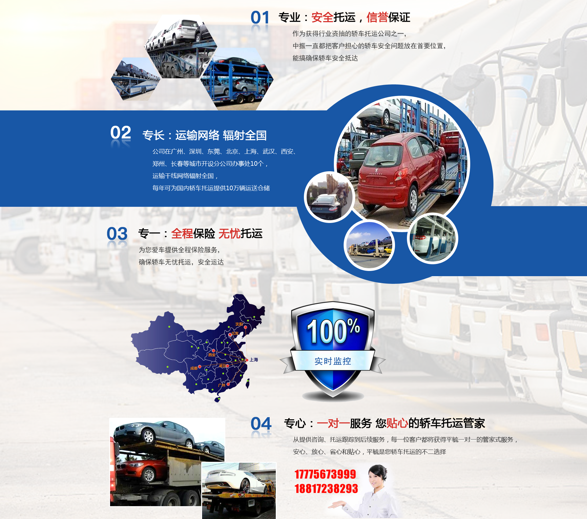 公司承諾:同等的價(jià)格,我們比速度,同等的速度,我們比服務(wù),同等的服務(wù),我們比誠信!公司全體員工牢記并且踐行著“尊客、愛車、守信、認(rèn)真、快速、價(jià)平”的服務(wù)理念,珍惜客戶給我們的每一份委托,用心處理轎車托運(yùn)的每個(gè)環(huán)節(jié),讓您的每一次所托都感到物超所值.....